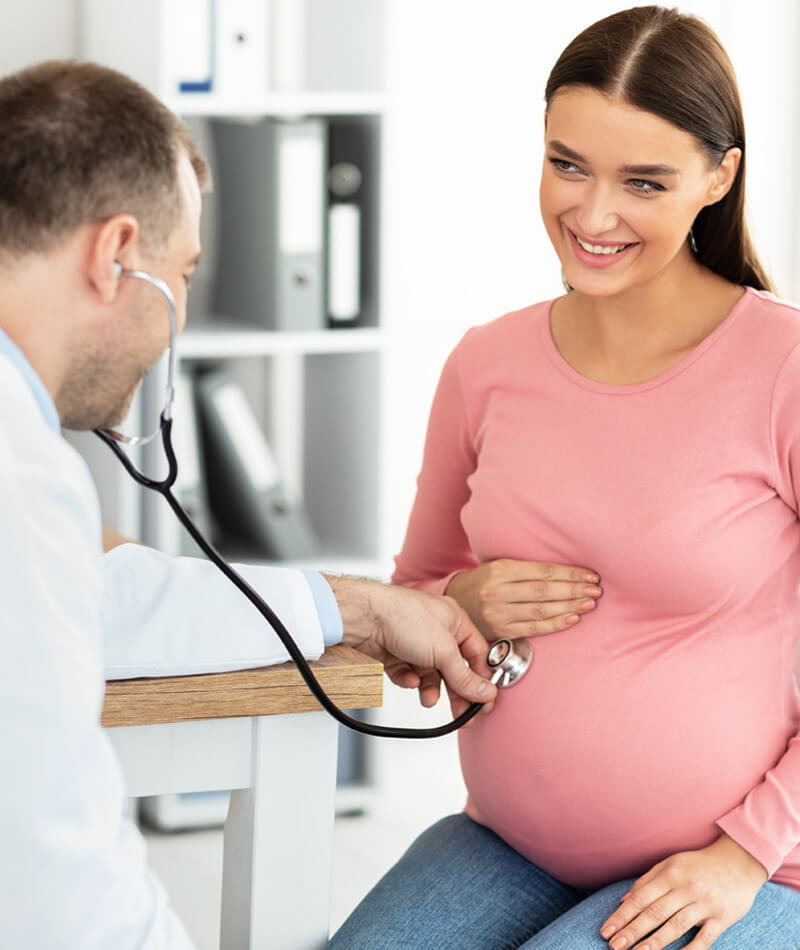 During pregnancy, the doctor monitors both mother and baby throughout all trimesters. Services include regular check-ups, blood tests, ultrasounds, management of high-risk pregnancies, nutritional guidance, and preparation for safe delivery.